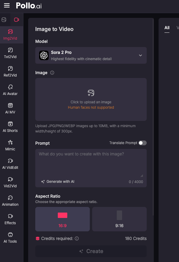 - Sora 2 Pro (8s): 180 credits per generation