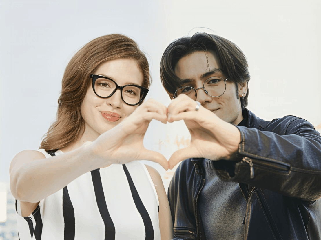 Create a heart gesture video from two photos.
